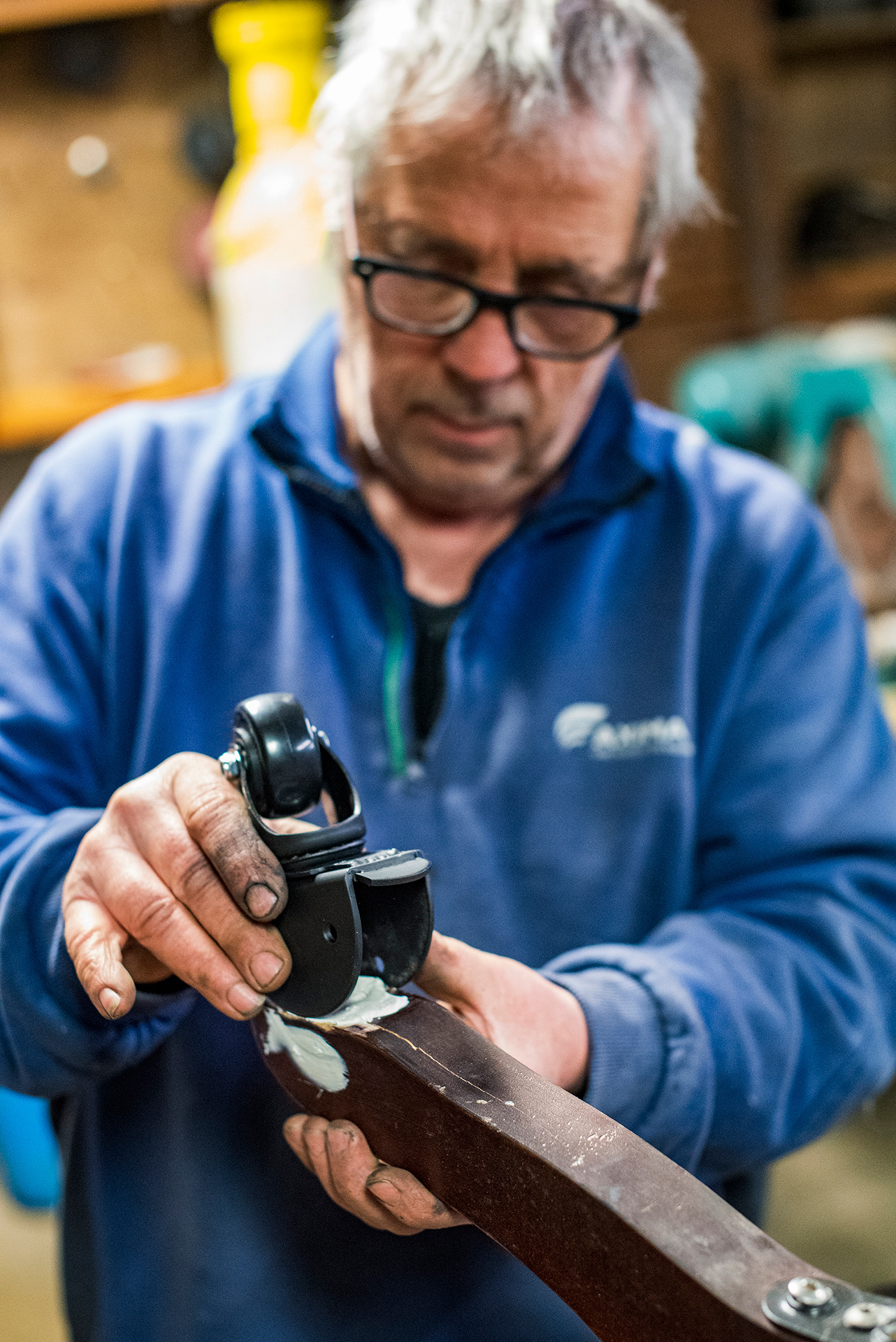 Au cours de cette journée, nous le suivrons alors qu'il répare les roulettes d'un pied de fauteuil de bureau.